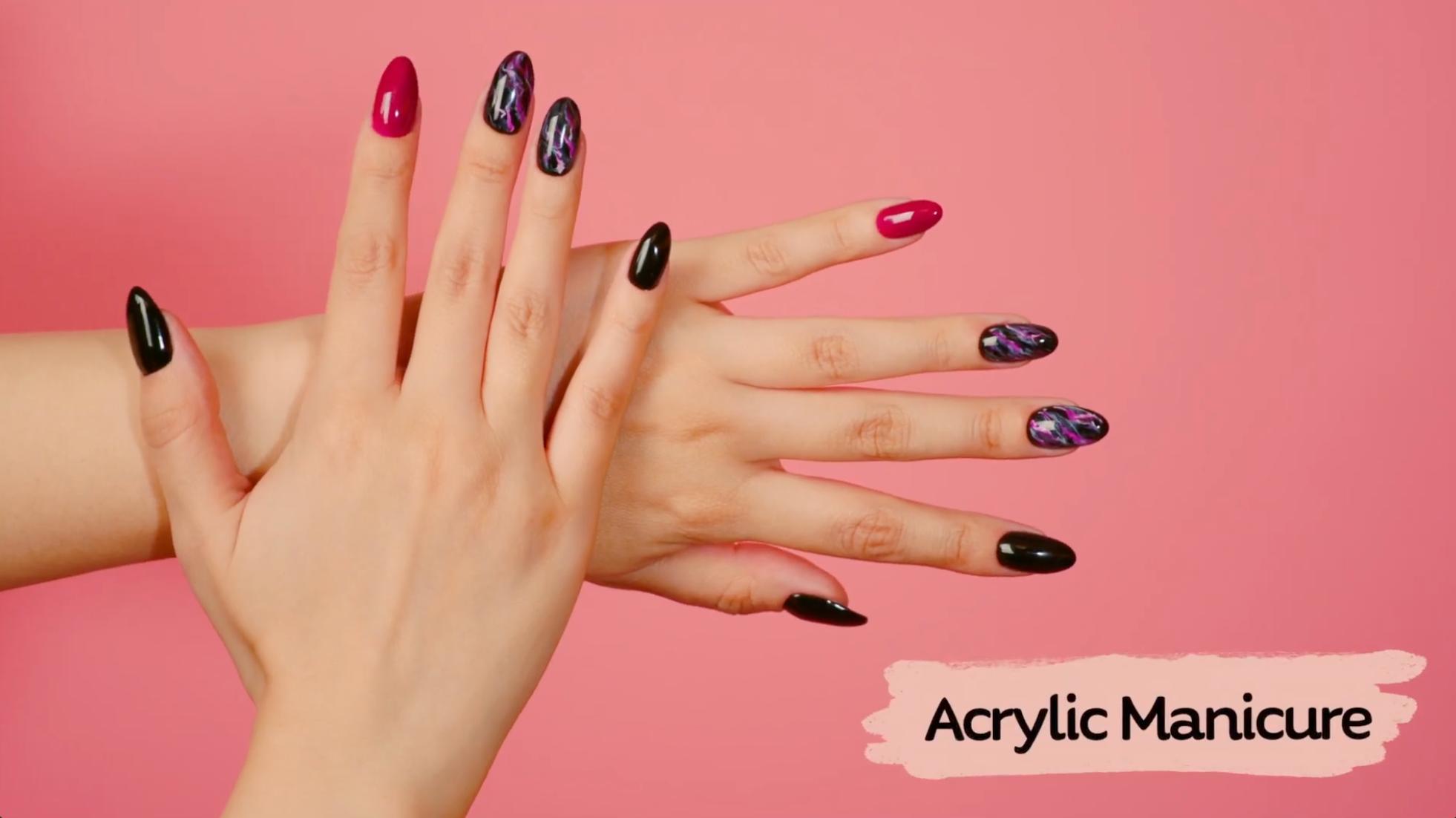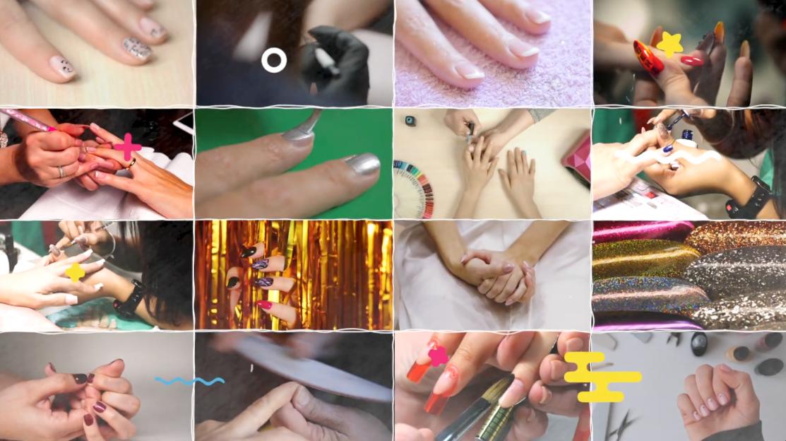 Licensed professional clips, sourced allowed visuals, and selected supporting footage to illustrate each manicure type accurately (no AI tools existed yet).